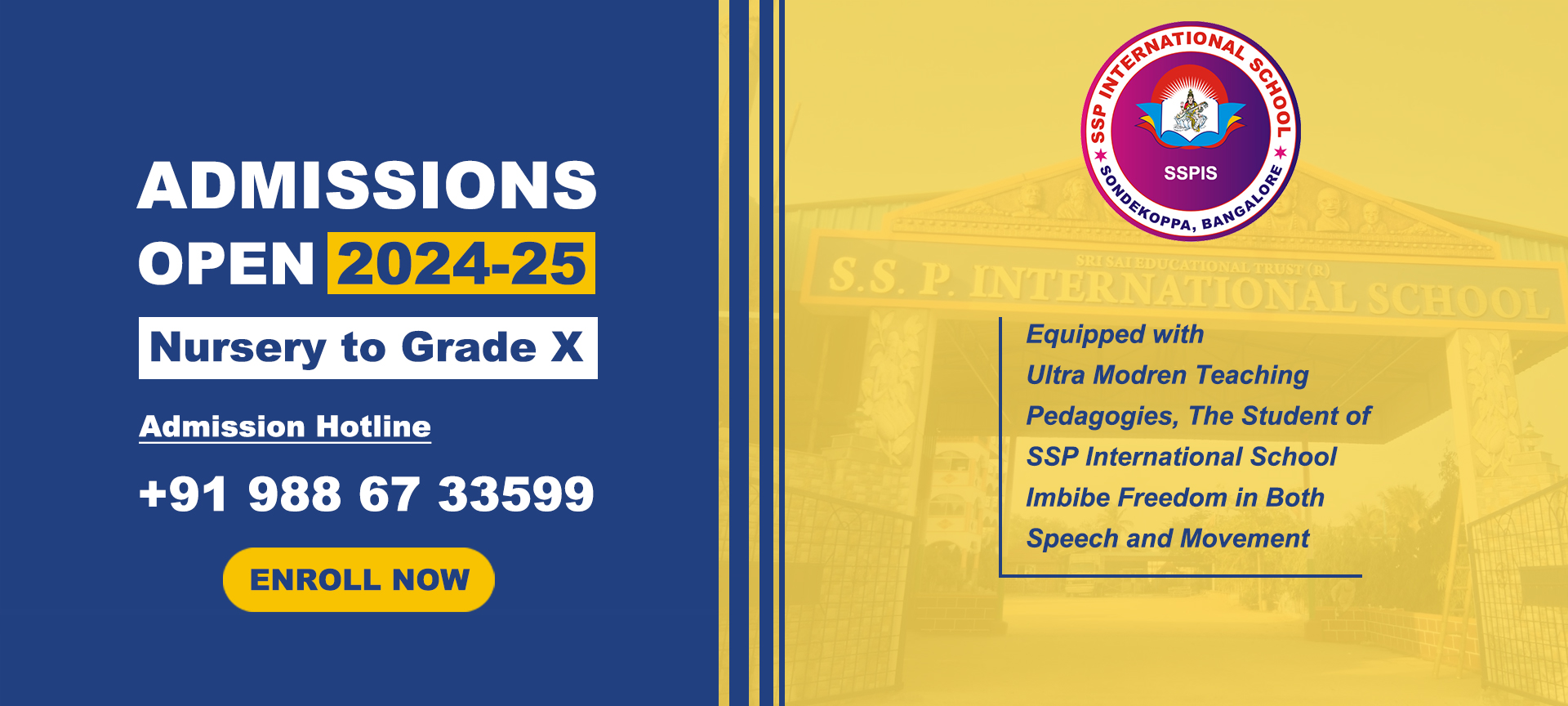 SSP International School was born out of the ideology that children must be given an environment that makes them want to come to school every day. The schools, which were founded in 1 by the 7th Peethadhipati. The guidance has also led The SSP International School to lay a great emphasis on inclusiveness.
